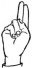На ћирилици написано БЛАЖА БАКИЋ састоји се из 10 слова [?]. Исписано ћириличном једноручном азбуком за глувонеме: